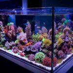 Освещение домашнего водоема подбирают, исходя из потребностей гидробионтов. Кораллам требуется световой поток в 80 люмен на литр. Лучше использовать светодиоды холодного света или люминесцентные лампы. Необычно выглядит морской резервуар, подсвеченный синим светом. Его применяют в темное время суток в качестве подсветки для наблюдения за питомцами, ведущими ночной образ жизни.